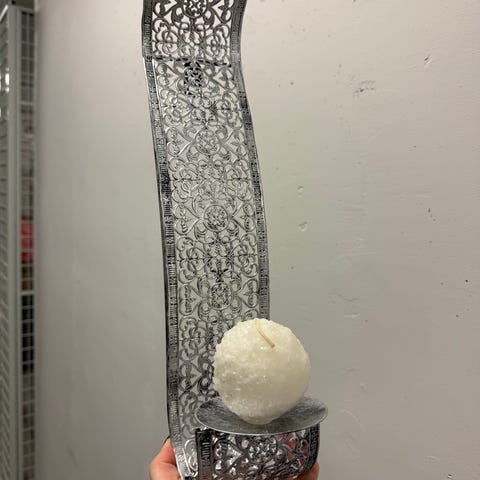 Två ljushållare i vitt med mönster. Glasen har en dekorativ design och kan användas för olika ändamål som exempelvis ljushållare eller förvaring av småsaker. Vet tyvärr inte märket, men tror att de är köpte på Åhléns. 150 kr för både. Nya utan förpackning, men aldrig använda.