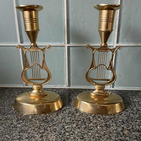 2 st Antika mässingssköldar/ljushållare i gott skick.