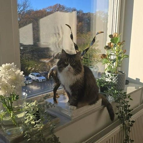 Ocicat är en aktiv ras så det är en fördel om den som eventuellt tar över har erfarenhet av ocicat eller liknande raser. Han behöver en del lek och stimulans. Att vara innekatt men ha tillgång till rastgård/innätad balkong hade varit det bästa, men inget krav. Han har alltid föredragit människors umgänge framför andra katter, men har bott med en kattkompis hela livet. Jag tror att han funkar både som ensamkatt eller med kattkompis. Just nu bor han i Järna 5 mil söder om Stockholm, men hittar jag rätt hem Göteborgstrakten kan jag hjälpa till med transport.