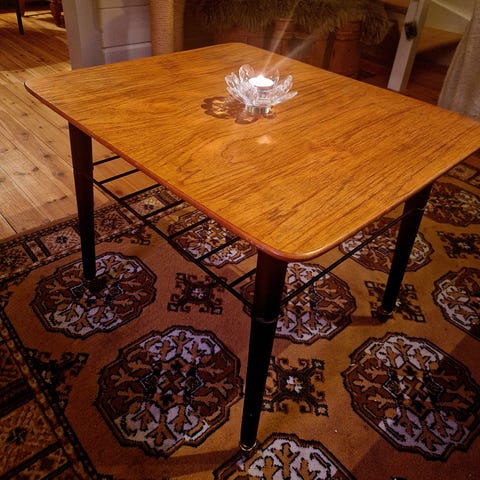 Sidobord/telefonbord i teak med en låda och en (tidnings-)hylla under bordsskivan. Bordet har en rektangulär form och passar som förvarings- och avlastningsmöbel i vardagsrum eller sovrum (sängbord). Från mitten av seklet. Dansk design.