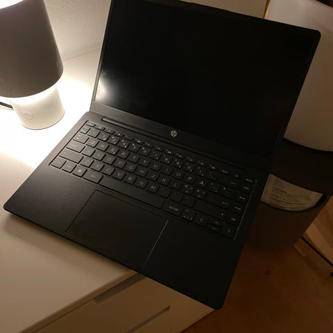 HP bärbar dator med AMD Ryzen 5 5500U processor, 16 GB RAM och 512 GB SSD-lagring. Skärmstorlek och färg är inte specificerade. Passar för allmän användning och arbete.