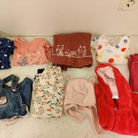 Blandade kläder i mycket fint skick, utvalda med omsorg. Det finns även solskyddsdräkt samt hattar som kommer att passa under en längre tid. Kolla gärna mina andra annonser med ullkläder samt bärsele/bärsjal.