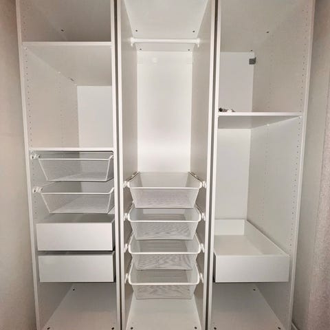 Hej! Säljer en IKEA PAX Garderob. Måtten är 35.5x50x236cm. Bakre spånskivan har lossnat lite(se bild 3) men annars i okej skick.