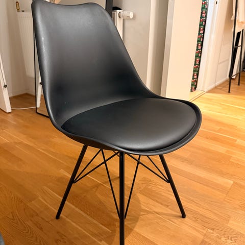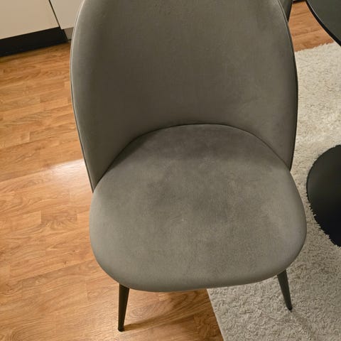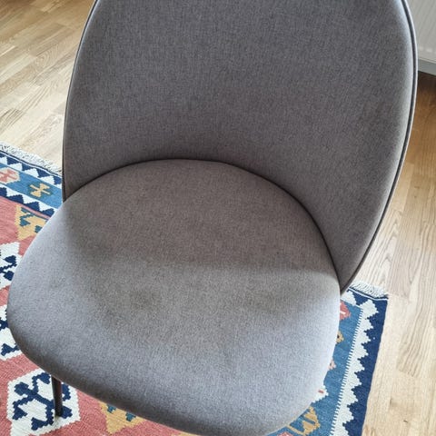 Säljer två moderna och bekväma stolar med stoppad sits och rygg i ljusgrå/beige tyg. Svarta metallben ger ett stabilt och tidlöst uttryck. Passar perfekt som matstolar eller extra sittplatser.