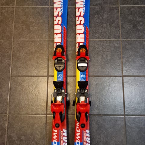 Slalomskidorna är utrustade med ställbara HEAD-bindningar. De har synliga tecken på användning men funkar fortfarande utmärkt för ändamålet. Säljs pga förrådsrensning