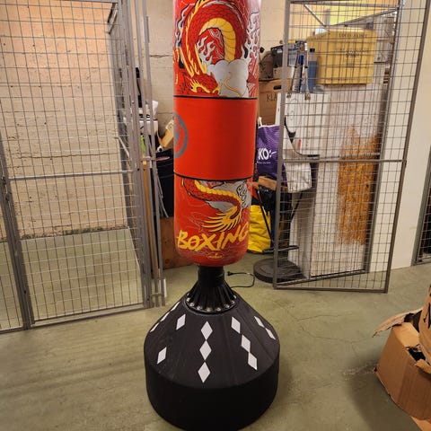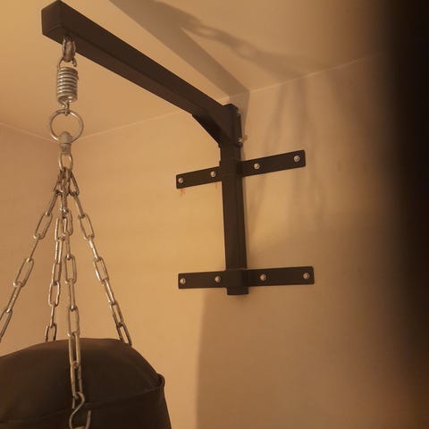 Den kan fyllas med sand som vikt men den har också rejäla sugproppar som gör så att den sugs fast i golvet! Kan delas i 2 delar så ett stort bagage borde räcka!