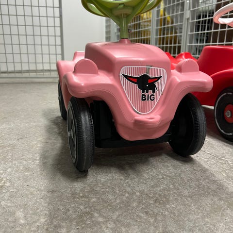 Röd Bobby car från BIG i fint skick. Lite skav på något klistermärket och ett klistermärke saknas på ena sidan. Enbart använd inomhus.