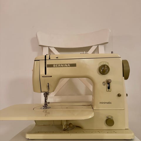 Mini Sewing Machine är en bärbar symaskin i vit och lila färg. Den drivs med batterier eller strömadapter och är kompakt i storlek, lämplig för mindre sömnadsprojekt och reparationer. Produkten inkluderar strömadapter, batterifack, arbetsbord och bruksanvisning.