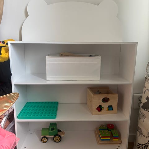 Fin, vit vägghylla från Alice & Fox med tre separata hyllplan för böcker, leksaker eller annat. Perfekt för barn av alla åldrar.