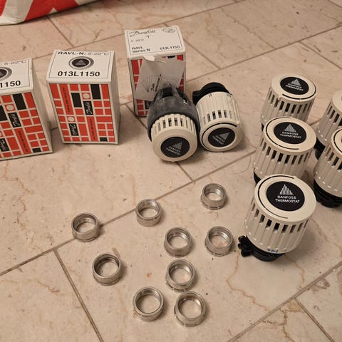 Jag har totalt 4 stycken termostatgivare från märket Danfoss till salu. De är helt nya, oanvända och ligger i sina originalförpackningar.