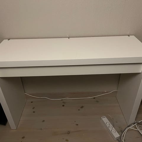 Jättefint skick! Inga repor. Vit ”ram” i stål med glasskiva ovanpå. Lättskött och användbart! Funkar även perfekt som sminkbord.