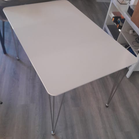 Säljer mitt köksbord med 4st stolar pågrund av flytt. Samtliga möbler är köpta på Ikea under 2024. 3 stolar finns på bilden, men 1 av stolarna ligger kvar i sin förpackning då den aldrig kom till användning. Allt för 250kr snabbt och smidigt!