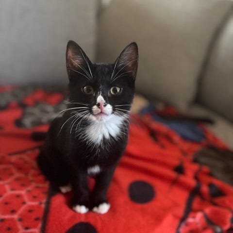 Mysig och kelig katt som trivs bra med barn. Föredrar att vara ute men är van senaste året att bo i lägenhet.