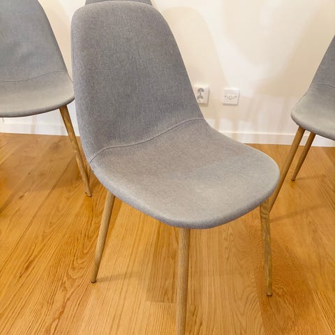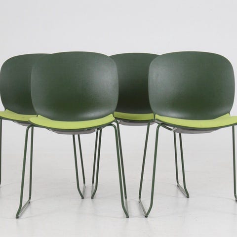 Matstol, Colore. Tillverkad i formpressad plywood och med underrede i pulverlackerat rostfritt stål, allt lackerat i grön nyans. Bredd 44 cm, djup 50 cm, höjd 45 cm, sitthöjd 46 cm, sittdjup 40 cm.