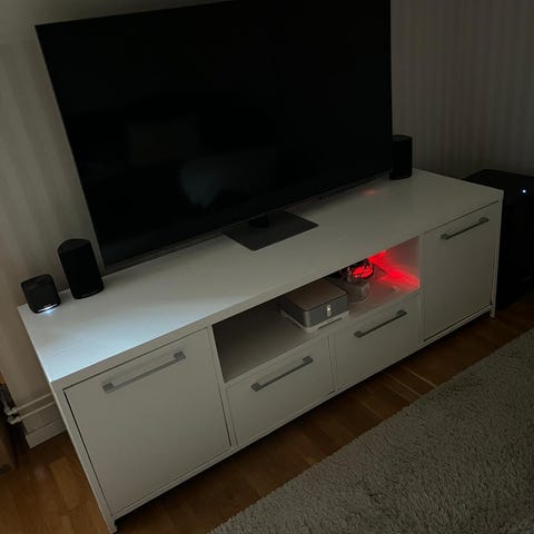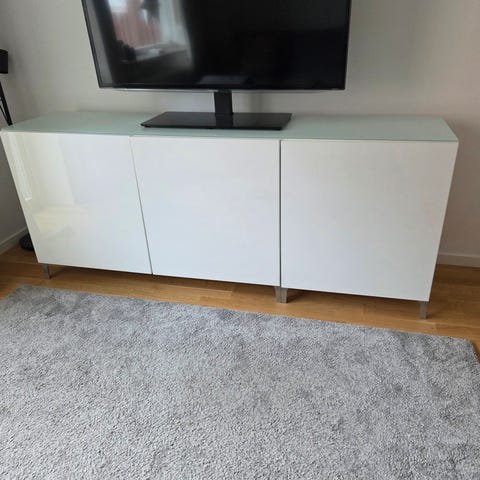 Säljer en ca 1år gammal IKEA bestå tv bänk med dörrarna Mörtviken. Ben och hyllplan ingår.