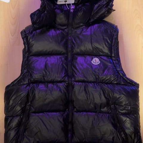 Napapijri Västar i storlek M, svart färg. Materialet vet jag inte. Västen har en huva och dragkedja framtill samt en framficka med dragkedja. Designen inkluderar Napapijri-logotyp och en norsk flagga. Passar för utomhusbruk.