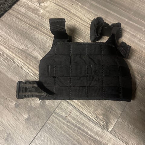 Skyddsväst i blått material. Designad för att ge skydd och komfort vid användning. Extra platta på framsidan. storlek L/XL. Väldigt bra skick.
