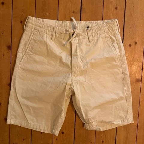 NN07 shorts i beige färg, tillverkade i linne. Storlek M för herrar. Shorts med flera fickor och knappstängning framtill.