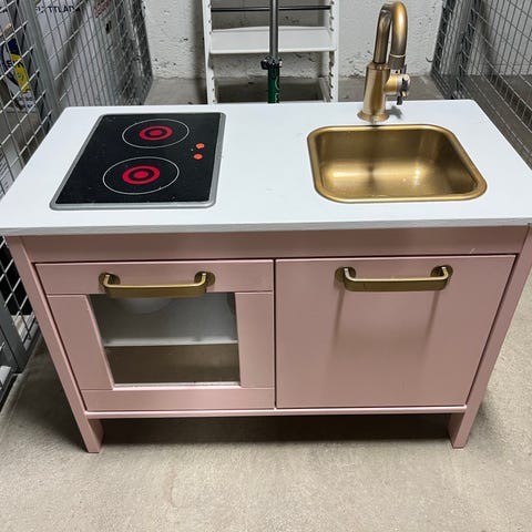Det finns någon mindre skavank som lätt målas över. Plattorna lyser tyvärr inte, men kanske kan man laga det om man vill? Modellen heter IKEA DUKTIG, se bild för mått.