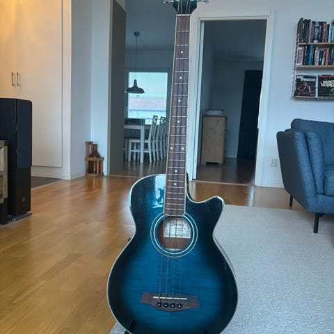 Säljer ett hardcase för elbas. Långt ifrån nyskick på utsidan men hel och fin rött material på insidan.