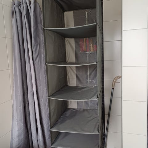 En mycket praktisk garderob I tält tyg, perfekt för förvaring av kläder och diverse annat i tex förråd eller garaget.