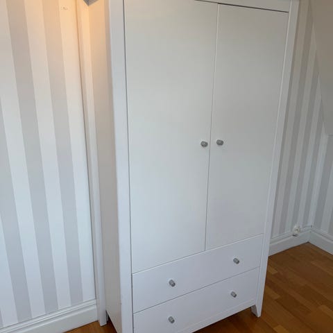 En vintage Garderob från en gammal Ikea kollektion i furu som är ommålad i nuvarande färg. Tung så krävs två för att bära. Går ej att montera isär.