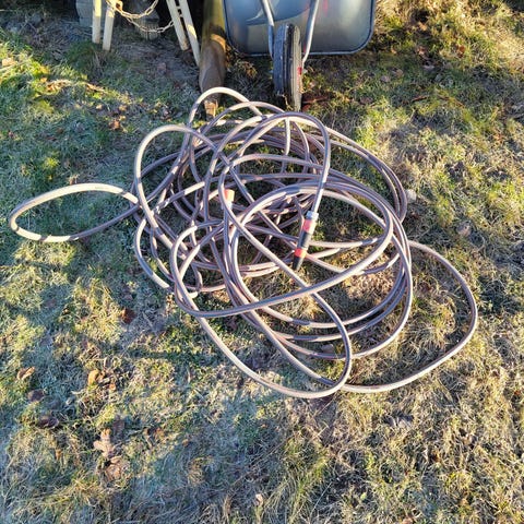 Säljer en gul trädgårdsslang i bra begagnat skick. Slangen är lång och levereras med flera snabbkopplingar/adaptrar (se bilder), kompatibla med vanliga bevattningssystem.