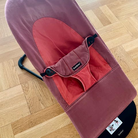 Babybjörn babysitter med naturligt gung som följer med lekbåge.