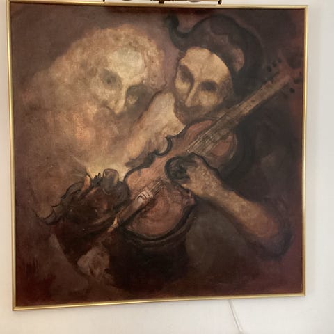 Oljemålning av Rune Högberg född 1937 avliden nyårsafton 2000. Rune arbetade spårvägen i Göteborg, men var konstnär vid sidan om och har målat en hel del naturtrogna och vackra tavlor från sin uppväxt i Hisingen och han älskade hästar.! önskas fler motiv så hör gärna av er
