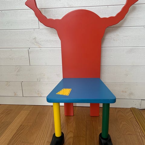Pink Children Foldable chair. There are visible signs of wear and sunbleaching but otherwise functional