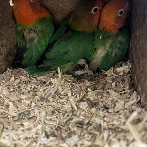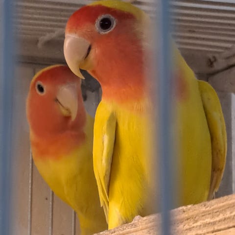 Bur och tillbehör till papegojorna finns om det önskas köpa till.