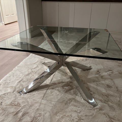 Runt soffbord med glasskiva och underrede i metall från Ellos. Soffbordet är i fint skick med några lättare märken men som helt ärligt inte syns vid första anblick.