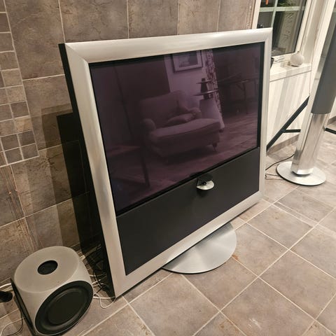 Bang & Olufsen BeoVision 9 TV 50 tum plasma med motordrivet golvstativ och tillhörande Beo 4 fjärrkontroll. Inbyggd B&O ljudsystem med kraftfull Beosystem 3 receiver. Sammantaget en kraftfull och elegant ljud- och bildupplevelse. Fungerar utmärkt att koppla in Apple TV/Google TV.