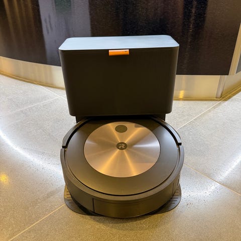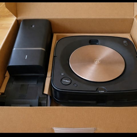 iRobot Roomba s9+ S955840 Robotdammsugare med automatisk smutsutkastning. Enheten är utformad för att rengöra golvytor och har en basstation som automatiskt tömmer dammbehållaren, vilket minskar behovet av manuell tömning. Passar för användning i hem med olika golvtyper.