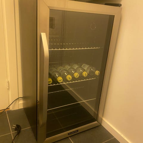 Sandstrøm 6-bottle Kylskåp vin kyl med plats för sex flaskor, svart färg. Upplyst. Tyst och välfungerande, tar lite plats. Som nytt. Enbart funktionstestat, legat i kartong.