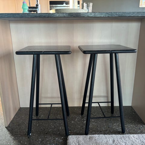 Säljer två fina barstolar i ljust trä från Fritz Hansen designad av Arne Jacobsen i det klassiska sjuan.
