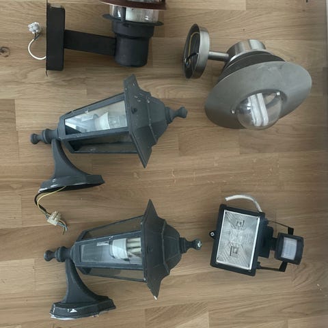 Fungerande vit sensorlampa med lampkupa av blåsigt klarglas från märket Steinel. Det är modell L 535, som även anges med typnummer 6440/6441. Se länk för specifikationer: https://khs.se/shop/sensorlampa-l535/