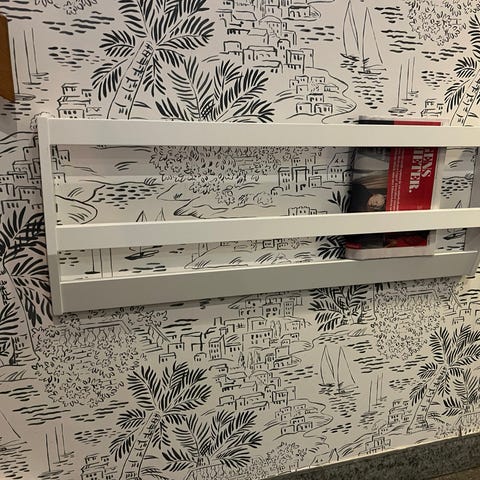 Vägghängt tidningsställ för förvaring av tidningar och magasin.