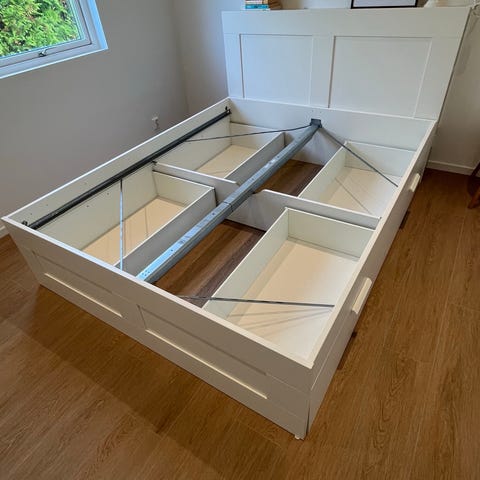 Resårmadrass från Ikea och gavel från Jysk i bredd 105 cm säljes. Mycket fint skick.