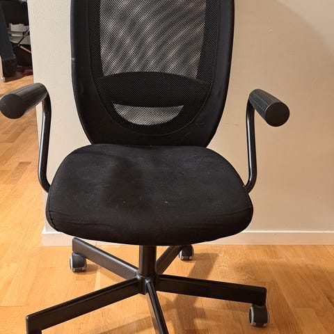 Stol, IKEA Långfjäll, rosa. Det är en snurrstol med justerbar sitthöjd och manuell gungmekanism.