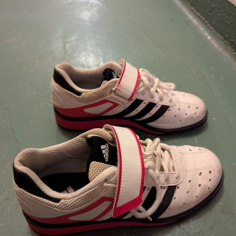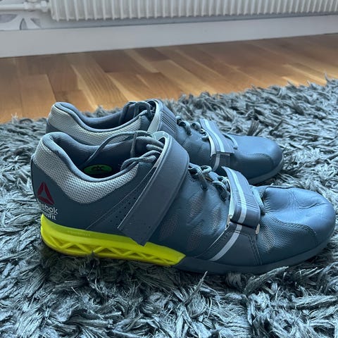 Tyngdlyftarskor i storlek 40 med orange och svart färg. Märke Reebok Exoframe. Skorna har kardborreband för justerbar passform och är lämpliga för tyngdlyftning. Finns liten reva på vänster häl men inget som påverkar funktion över huvud taget. Inköpta 2020 men ej använda senaste 3 åren, bra skick. Storlek 40,5 egentligen men kunde inte välja det. Jag har normalt 42 i storlek men dessa är små stora i storlek.