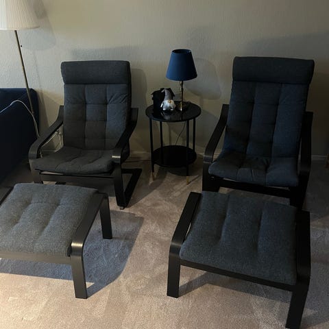2 st fåtöljer kan användas var för sej även sättas ihop till soffa. Väl använda men hela. Tyget går att ta av. Djur finns i hemmet.
