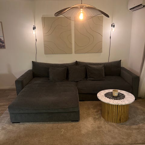 Säljer nu denna fina soffa från Mio, modellen heter Rossi XL och den har en höger schäslong med armstöd. Soffan är i bra skick, inga som helst konstigheter med den. Säljs pga flytt.
