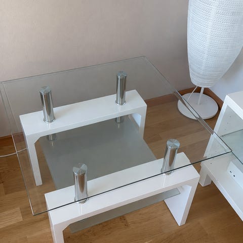 Säljer mitt älskade soffbord som är köpt vintage! Det är ett stadigt ekbord med en glasskiva.