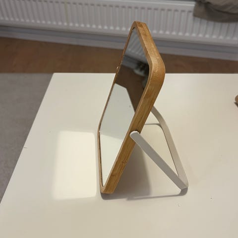 IKEA spegel i rektangulär form. Spegeln är utan ram och har en modern, minimalistisk design som kan användas för inredning i olika rum.