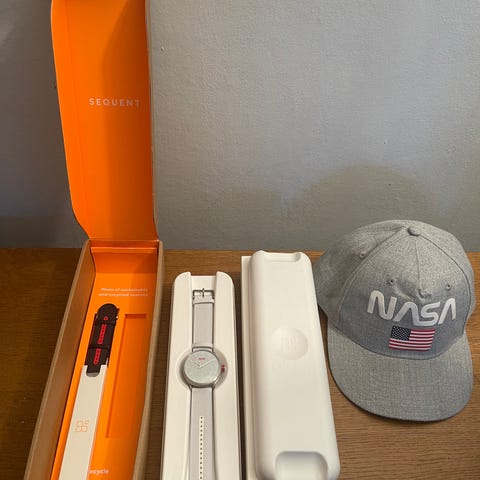 Inköpt 11 juni 2025 för 6000 SEK och är sedan dess mycket sparsamt använd, stållänken är helt oanvänd så det är bara gummibandet som vittnar om den sparsamma användningen som förekommit. Säljs då jag fick en annan mekanisk klocka av min sambo.