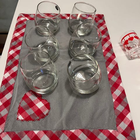 8 st små glas med ”öra” . Kan användas till punsch eller glögg.