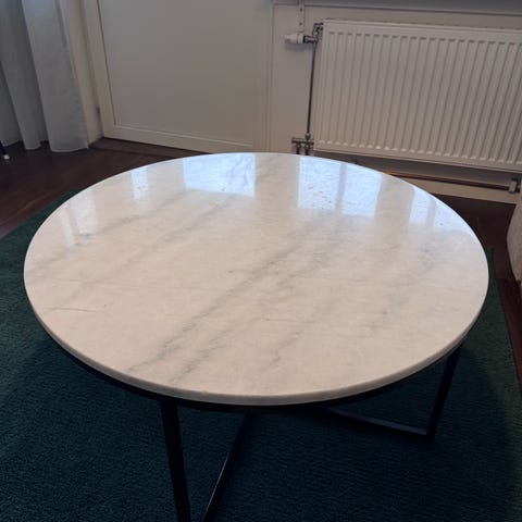Soffbord i marmor med måtten 120x60x45 cm. Färg i grå och vit nyans med naturligt marmormönster.