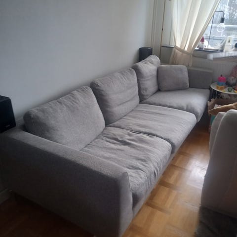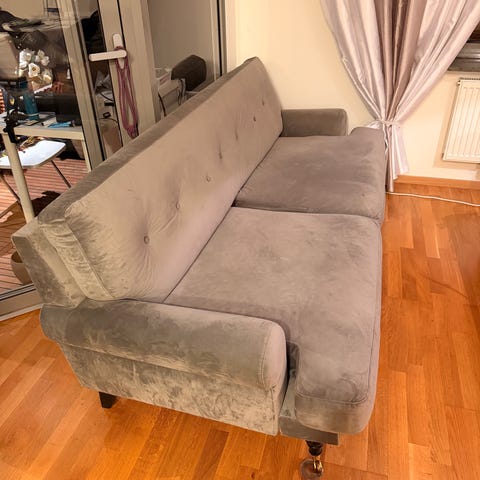 U soffa som har en del fläckar skänkes