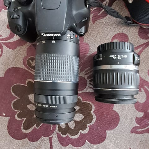 Till kameran följer laddare, batteri samt objektivet Canon EFS 18-55 III som lämpar sig bra som allroundobjektiv.